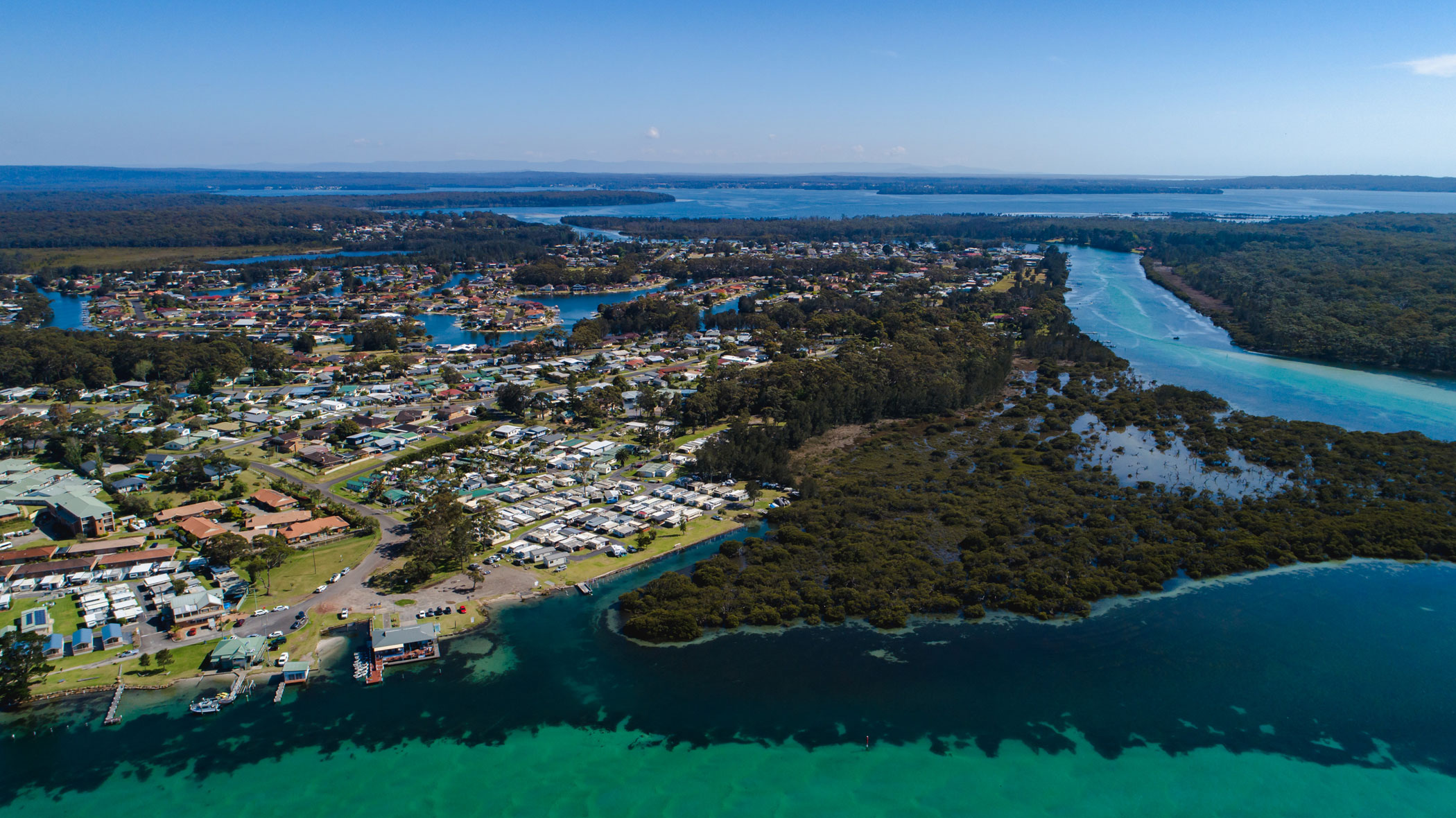 Sussex Inlet is approximately 2½hours drive south of Sydney, with pristine beaches, lake, river and access to St Georges Basin. Jervis Bay is a 30 minute drive from Sussex Inlet. The town of Sussex Inlet is located on the west bank of Sussex Inlet, a narrow inlet connecting Wreck Bay to the waterbody of St Georges Basin. The east bank of Sussex Inlet is the Booderee National Park.